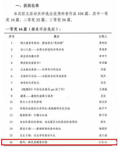 图2.中国化学会第一季科普征文一等奖名单![]()